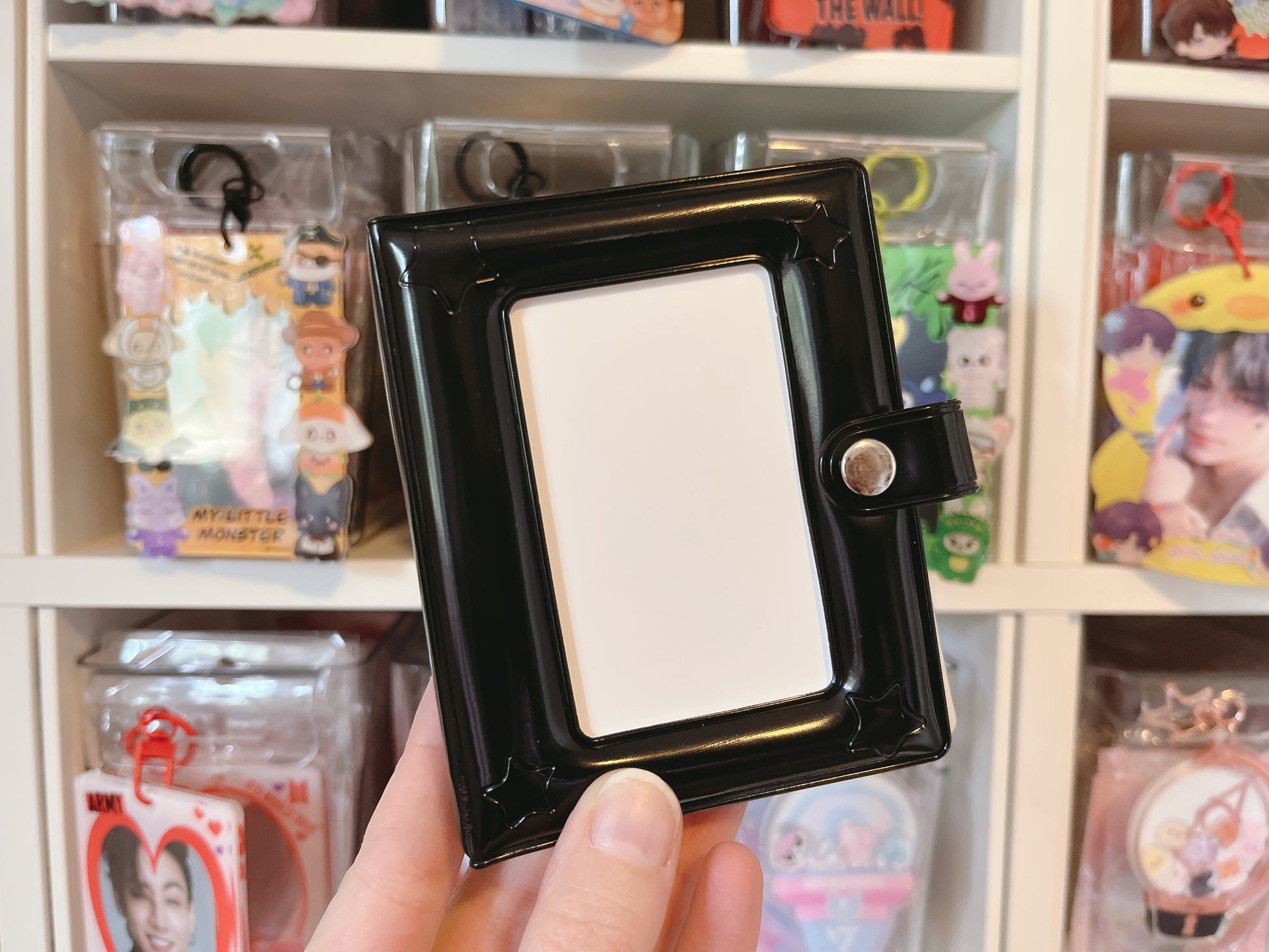 The front window does not have protective film over the photocard. I suggest using a lomo card /fanmade here instead.